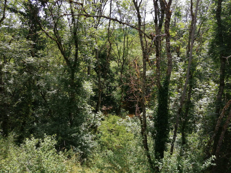 De openslaande deuren in de woonkamer komen uit op een groot terras, waar u kunt genieten van de natuur en het uitzicht op het bos en de rivier de Yonne onder u. Op het terras staan een tafel en stoelen om lekker buiten te eten.